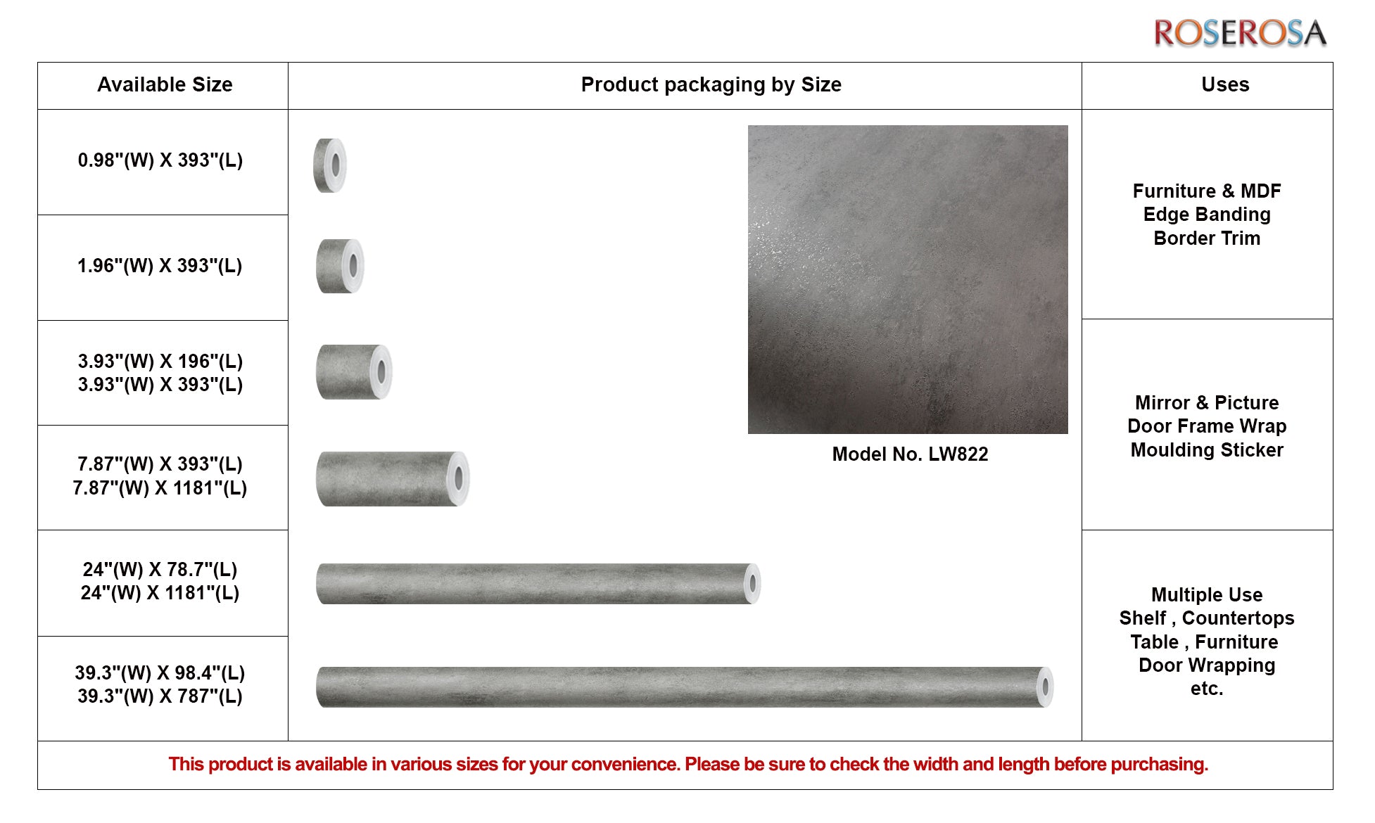 This product is available in various sizes for your convenience. Please be sure to check the width and length before purchasing.