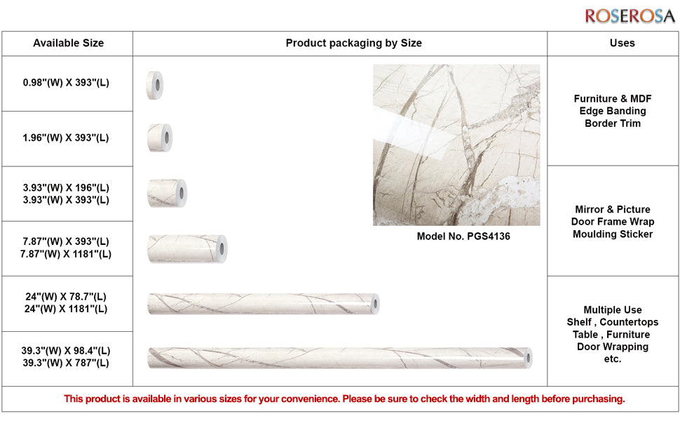 ROSEROSA Peel and Stick Glossy Faux Marble Architectural Film Self-adhesive Wallpaper Door Wrap Counter Top Border Mirror Molding Trim PGS4136