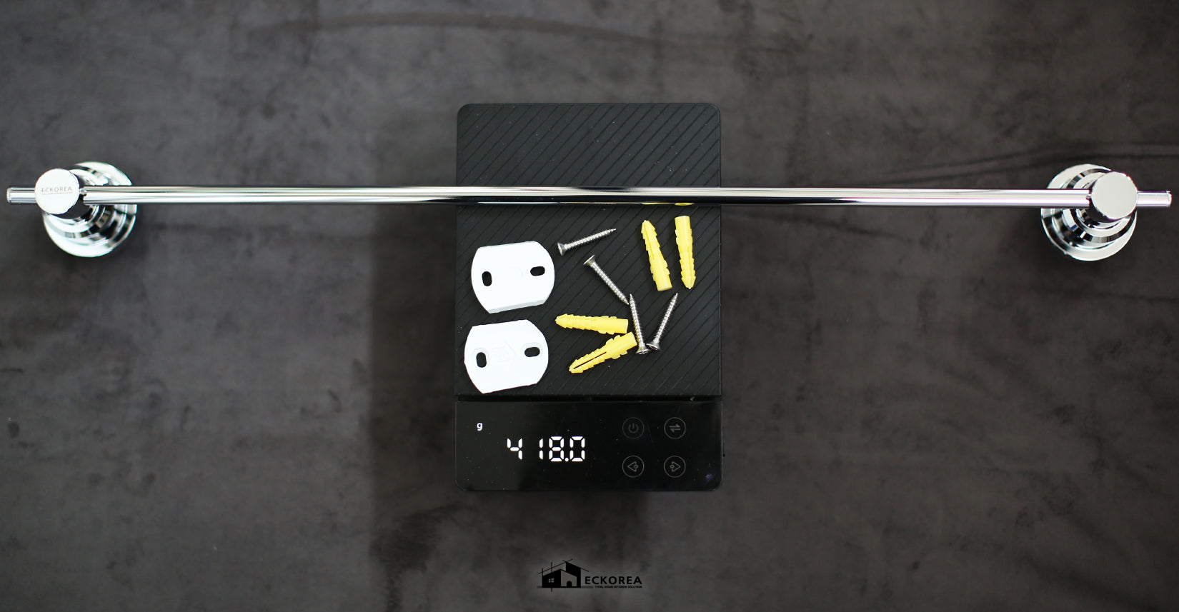 ECKOREA® 22-Inch Polished Chrome Towel Bar ECK-210S, Durable Stainless Steel & Zinc Alloy, Wall-Mounted, Screw-in